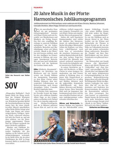 Jubiläumskonzert im Pförtnerhaus unter anderem mit Klaus Christa, Mathias Johansen, Conradin Brotbek, Albert Papp, Christel Lee und Suyoen Kim.