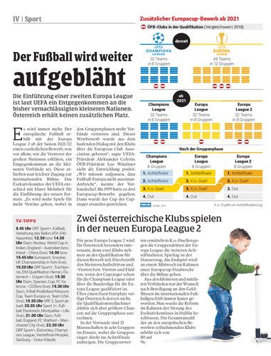 Die Einführung einer zweiten Europa League ist laut UEFA ein Entgegenkommen an die bisher vernachlässigten kleineren Nationen. Österreich erhält keinen zusätzlichen Platz.