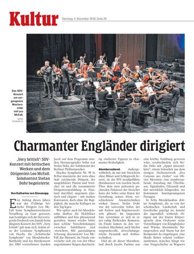 „Very british“: SOV-Konzert mit britischen Werken und dem Dirigenten Leo McFall. Solohornist Stefan Dohr begeisterte.