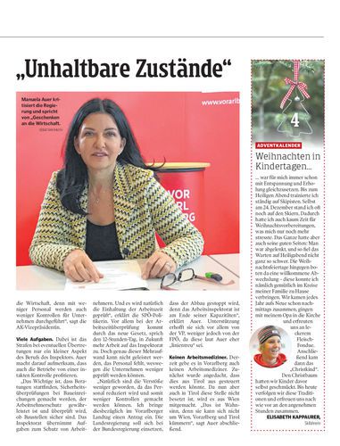 Aufgrund des Personalabbaus im Arbeitsinspektorat sieht AK-Vizepräsidentin Manuela Auer die Kontrollorgane gefährdet und möchte dazu einen Antrag im Landtag einbringen.