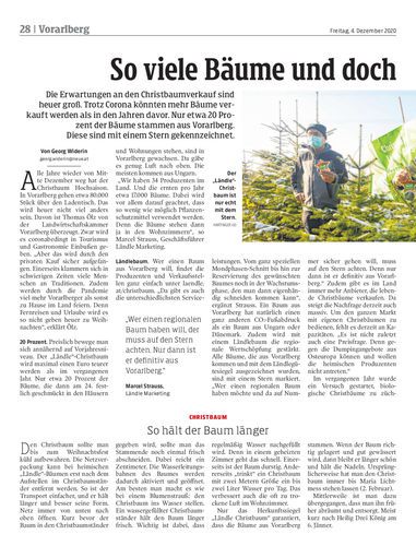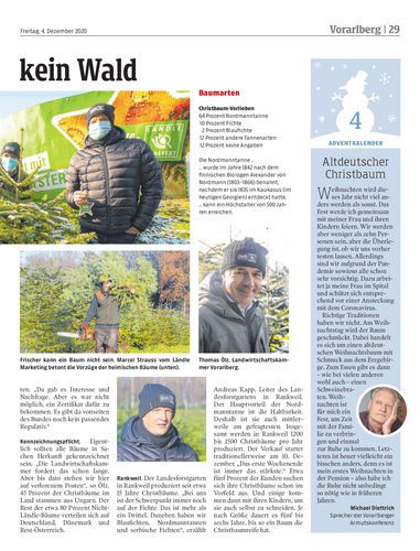 Die Erwartungen an den Christbaumverkauf sind heuer groß. Trotz Corona könnten mehr Bäume verkauft werden als in den Jahren davor. Nur etwa 20 Prozent der Bäume stammen aus Vorarlberg.