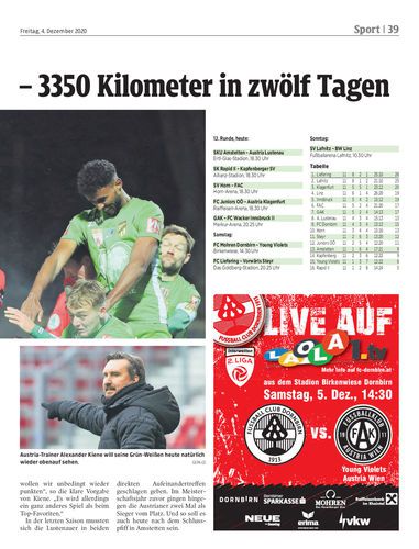 Im letzten Auswärtsspiel vor der Winterpause treten die Lustenauer gegen die „unbequemen“ Kicker aus Amstetten an. Cheftrainer Alexander Kiene hat bis auf Nicolai Bösch alle Mann an Bord.