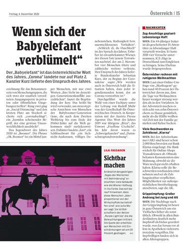 Der „Babyelefant“ ist das österreichische Wort des Jahres, „Corona“ landete nur auf Platz 2. Kanzler Kurz lieferte den Unspruch des Jahres.
