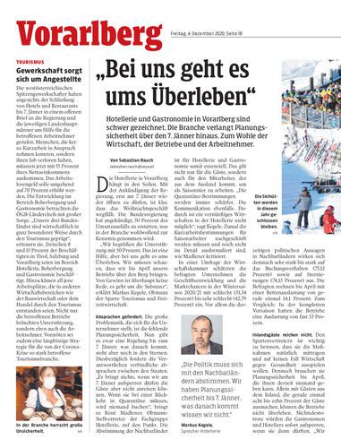 Hotellerie und Gastronomie in Vorarlberg sind schwer gezeichnet. Die Branche verlangt Planungssicherheit über den 7. Jänner hinaus. Zum Wohle der Wirtschaft, der Betriebe und der Arbeitnehmer.