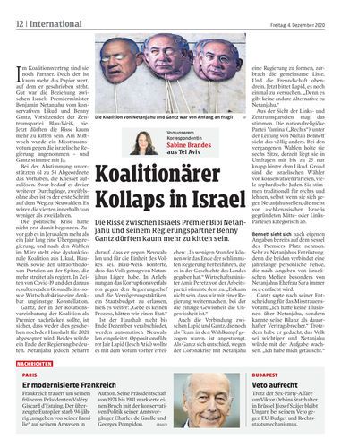 Die Risse zwischen Israels Premier Bibi Netanjahu und seinem Regierungspartner Benny Gantz dürften kaum mehr zu kitten sein.