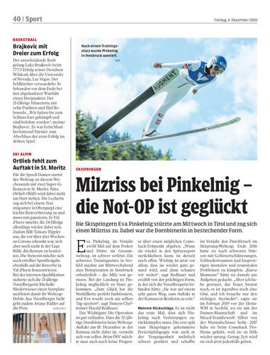 Die Skispringern Eva Pinkelnig stürzte am Mittwoch in Tirol und zog sich einen Milzriss zu. Dabei war die Dornbirnerin in bestechender Form.