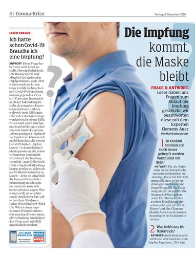 FRAGE & ANTWORT. Leser haben uns Fragen zum Ablauf der Impfung geschickt, wir beantworten diese mit dem Experten Clemens Auer. Von Maria Schaunitzer