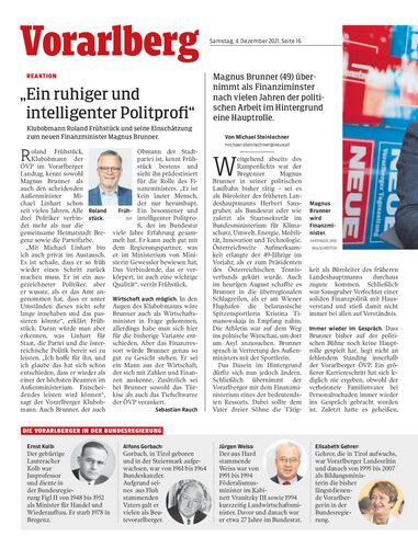 Klubobmann Roland Frühstück und seine Einschätzung zum neuen Finanzminister Magnus Brunner.