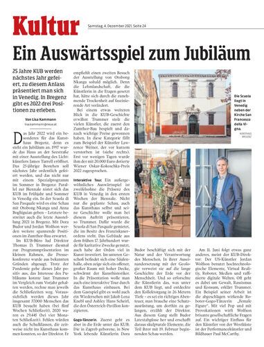25 Jahre KUB werden nächstes Jahr gefeiert, zu diesem Anlass präsentiert man sich in Venedig. In Bregenz gibt es 2022 drei Positionen zu erleben.