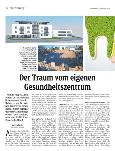 Thomas Kogler, Zahnarzt in Götzis, beweist Unternehmer-Mut in Krisenzeiten. Für seinen Traum von einem Haus, in dem verschiedene Mediziner unter einem Dach arbeiten, nimmt er 5,5 Millionen Euro in die Hand.