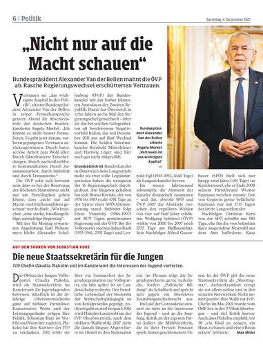 Bundespräsident Alexander Van der Bellen mahnt die ÖVP ab. Rasche Regierungswechsel erschütterten Vertrauen.
