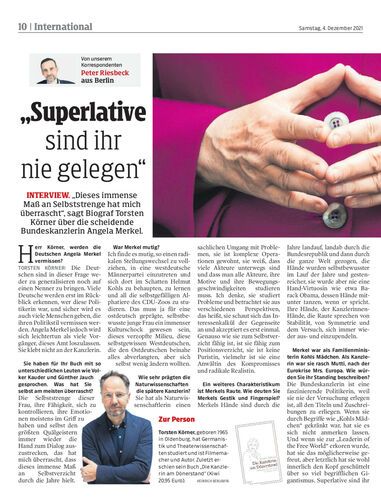 „Dieses immense Maß an Selbststrenge hat mich überrascht“, sagt Biograf Torsten Körner über die scheidende Bundeskanzlerin Angela Merkel.