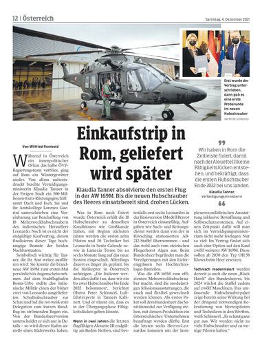 Klaudia Tanner absolvierte den ersten Flug in der AW 169M. Bis die neuen Hubschrauber des Heeres einsatzbereit sind, drohen Lücken.