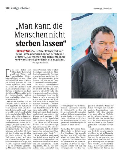 Reportage. Claus-Peter Reisch verkauft seine Firma und wird Kapitän der Lifeline. Er rettet 235 Menschen aus dem Mittelmeer und wird anschließend in Malta angeklagt. Von Ingo Hasewend