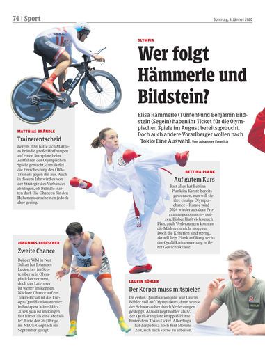 Elisa Hämmerle (Turnen) und Benjamin Bildstein (Segeln) haben ihr Ticket für die Olympischen Spiele im August bereits gebucht. Doch auch andere Vorarlberger wollen nach Tokio: Eine Auswahl. Von Johannes Emerich