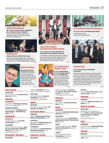 Sternsinger. Die Heiligen Drei Könige samt Sternträger sind in diesen Tagen wieder in Vorarlberg unterwegs. Auch Stefanie, Katharina, Paula und Lisa-Maria machen sich auf den Weg und helfen somit Menschen, denen es nicht so gut geht. Seiten 24/25 Hartinger
