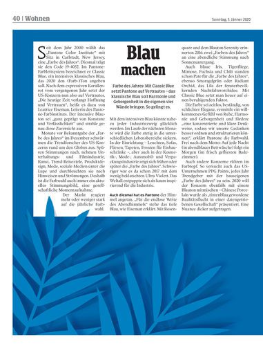 Farbe des Jahres: Mit Classic Blue setzt Pantone auf Vertrautes – das klassische Blau soll Harmonie und Geborgenheit in die eigenen vier Wände bringen. So gelingt es.