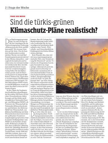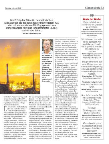 Der Erfolg der Pläne für den heimischen Klimaschutz, die die neue Regierung vorgelegt hat, wird mit dem ehrlichen Mit-Engagement von Bundeskanzler Kurz und Finanzminister Blümel stehen oder fallen. Von Gottfried Kirchengast
