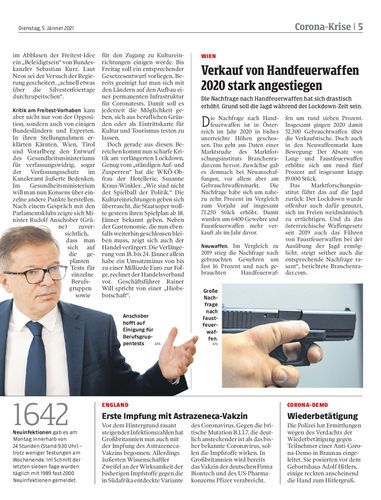 Die Nachfrage nach Handfeuerwaffen hat sich drastisch erhöht. Grund soll die Jagd während der Lockdown-Zeit sein.