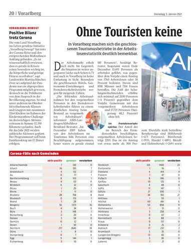 In Vorarlberg machen sich die geschlossenen Tourismusbetriebe in der Arbeitslosenstatistik deutlich bemerkbar.