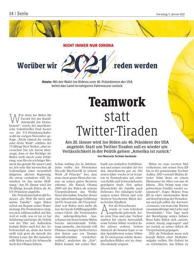 Am 20. Jänner wird Joe Biden als 46. Präsident der USA angelobt. Statt um Twitter-Tiraden soll es wieder um Verlässlichkeit in der Politik gehen: „Amerika ist zurück.“ Von Manuela Tschida-Swoboda