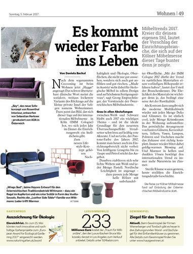 Möbeltrends 2017. Kreier dir deinen eigenen Stil, lautet der Vorschlag der Einrichtungsbranche, die sich auf der Kölner Möbelmesse dieser Tage bunter denn je zeigte.