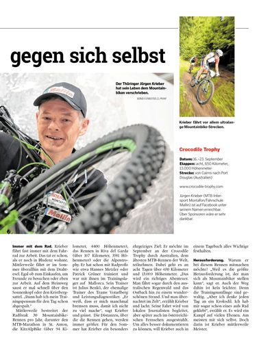 Jürgen Krieber (44) aus Thüringen hat ein großes Ziel: er möchte im September an der Crocodile Trophy in Australien teilnehmen. Das ist das älteste Mountainbike-Rennen der Welt – und eines der härtesten.