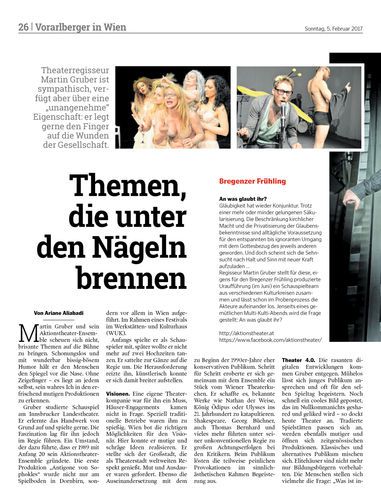 Theaterregisseur Martin Gruber ist sympathisch, verfügt aber über eine „unangenehme“ Eigenschaft: er legt gerne den Finger auf die Wunden der Gesellschaft.