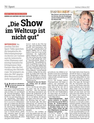 Interview. Im zweiten Teil des Sport-Talks sprechen die kanadische Abfahrtsolympiasiegerin Kerrin Lee-Gartner und ihr österreichischer Ehemann und einstige kanadische Erfolgstrainer Max Gartner über die Entwicklung des Skiweltcups. Sie prangern an, dass die 1967 gegründete Rennserie nicht mehr zeitgemäß ist.
