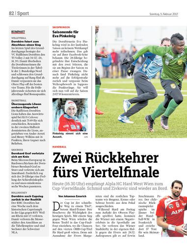 Heute (16.30 Uhr) empfängt Alpla HC Hard West Wien zum Cup-Viertelfinale. Schmid und Zivkovic sind wieder an Bord.