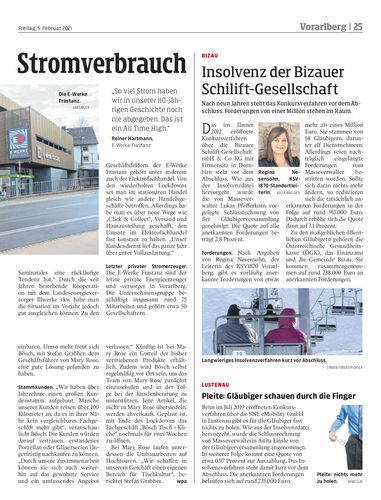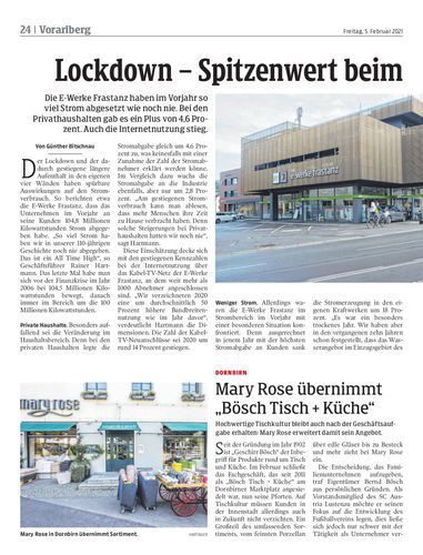 Die E-Werke Frastanz haben im Vorjahr so viel Strom abgesetzt wie noch nie. Bei den Privathaushalten gab es ein Plus von 4,6 Prozent. Auch die Internetnutzung stieg.