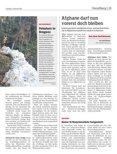 Gericht gewährte subsidiären Schutz, weil der Betroffene nie in Afghanistan gelebt hat, sondern in Pakistan.
