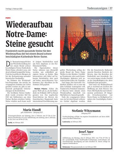 Frankreich sucht passende Steine für den Wiederaufbau der bei einem Brand schwer beschädigten Kathedrale Notre-Dame.