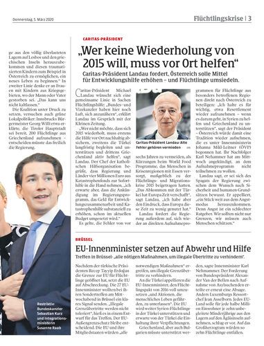 Caritas-Präsident Landau fordert, Österreich solle Mittel für Entwicklungshilfe erhöhen – und Flüchtlinge umsiedeln.
