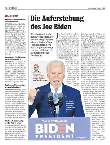 Viele hatten ihn abgeschrieben, doch der frühere Vizepräsident triumphiert am Super Tuesday. Nach dem Ausstieg Bloombergs zeichnet sich nun ein Zweikampf Biden – Sanders ab.