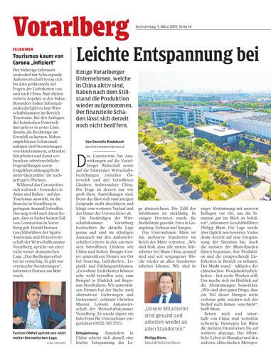Einige Vorarlberger Unternehmen, welche in China aktiv sind, haben nach dem Stillstand die Produktion wieder aufgenommen. Der finanzielle Schaden lässt sich derzeit noch nicht beziffern.