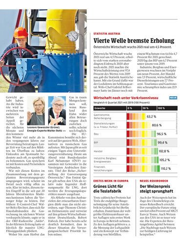 Österreichs Wirtschaft wuchs 2021 real um 4,5 Prozent.