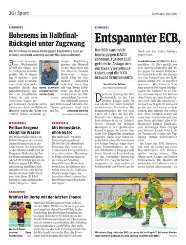 Der ECB kann sich heute gegen KAC II schonen, für den EHC geht es in Asiago um ein fixes Viertelfinalticket, und die VEU braucht Schützenhilfe.