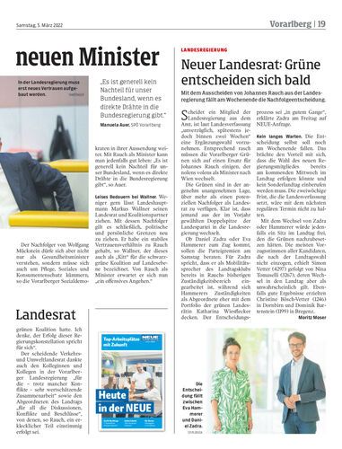 Mit dem Ausscheiden von Johannes Rauch aus der Landesregierung fällt am Wochenende die Nachfolgeentscheidung.