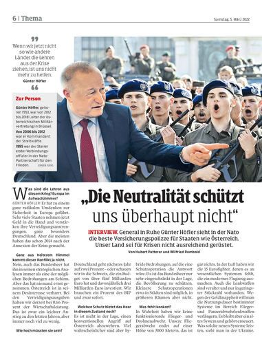 General in Ruhe Günter Höfler sieht in der Nato die beste Versicherungspolizze für Staaten wie Österreich. Unser Land sei für Krisen nicht ausreichend gerüstet. Von Hubert Patterer und Wilfried Rombold