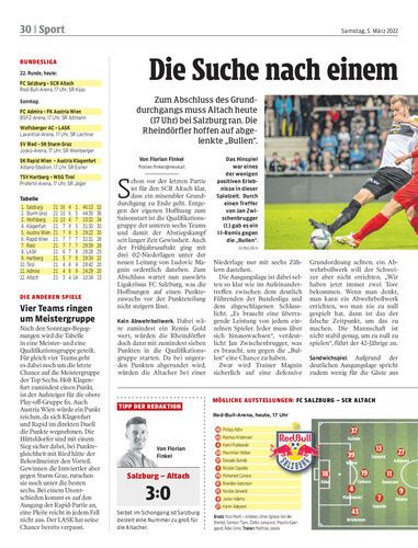 Zum Abschluss des Grunddurchgangs muss Altach heute (17 Uhr) bei Salzburg ran. Die Rheindörfler hoffen auf abgelenkte „Bullen“.