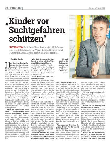 Interview. Mit dem Rauchen unter 18 Jahren soll bald Schluss sein. Vorarlbergs Kinder- und Jugendanwalt Michael Rauch zum Thema.