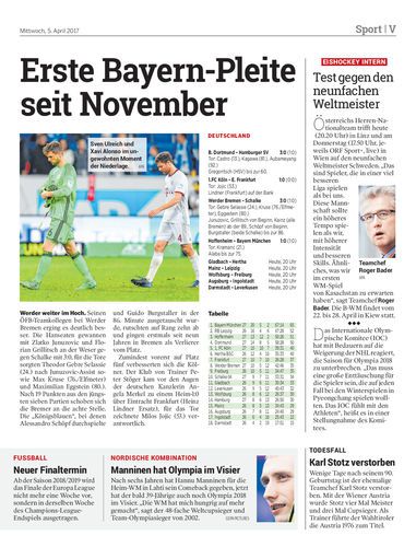 Nach 20 Pflichspielen ohne Niederlage verlor Bayern München in Hoffenheim knapp mit 0:1.
