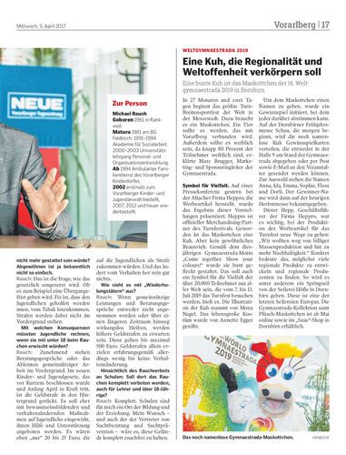 Eine bunte Kuh ist das Maskottchen der 16. Weltgymnaestrada 2019 in Dornbirn.