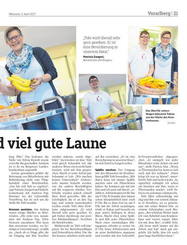Der Dornbirner Tobias Renoth (26) kann weder lesen noch schreiben noch rechnen. Trotzdem hat er im LKH Bregenz einen Job gefunden.