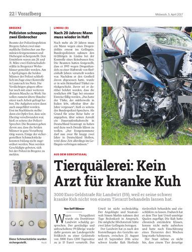 3000 Euro Geldstrafe für Landwirt (59), weil er seine schwer kranke Kuh nicht von einem Tierarzt behandeln lassen hat.