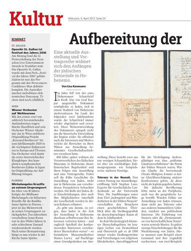 Eine aktuelle Ausstellung und Vortragsreihe widmet sich den Anfängen der jüdischen Gemeinde in Hohenems.