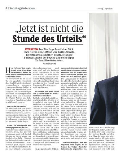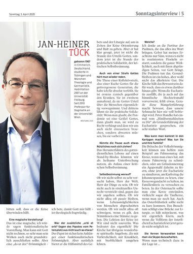 Interview. Der Theologe Jan-Heiner Tück über Ostern ohne öffentliche Gottesdienste, Livestreams als halben Ersatz, religiöse Fehldeutungen der Seuche und seine Tipps für familiäre Osterfeiern. Von Thomas Götz