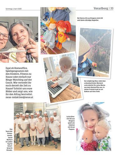 Egal ob Homeoffice, Spieleprogramm mit den Kindern, Fitness zu Hause oder einfach nur Binge-Watching auf der Couch. Wie vertreibt ihr euch derzeit die Zeit zu Hause? Schickt uns eure Bilder und zeigt uns, wie ihr den Alltag bestreitet. neue-redaktion@neue.at