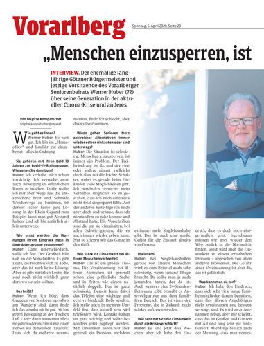Interview. Der ehemalige langjährige Götzner Bürgermeister und jetzige Vorsitzende des Vorarlberger Seniorenbeirats Werner Huber (72) über seine Generation in der aktuellen Corona-Krise und anderes.